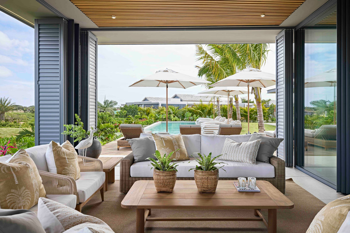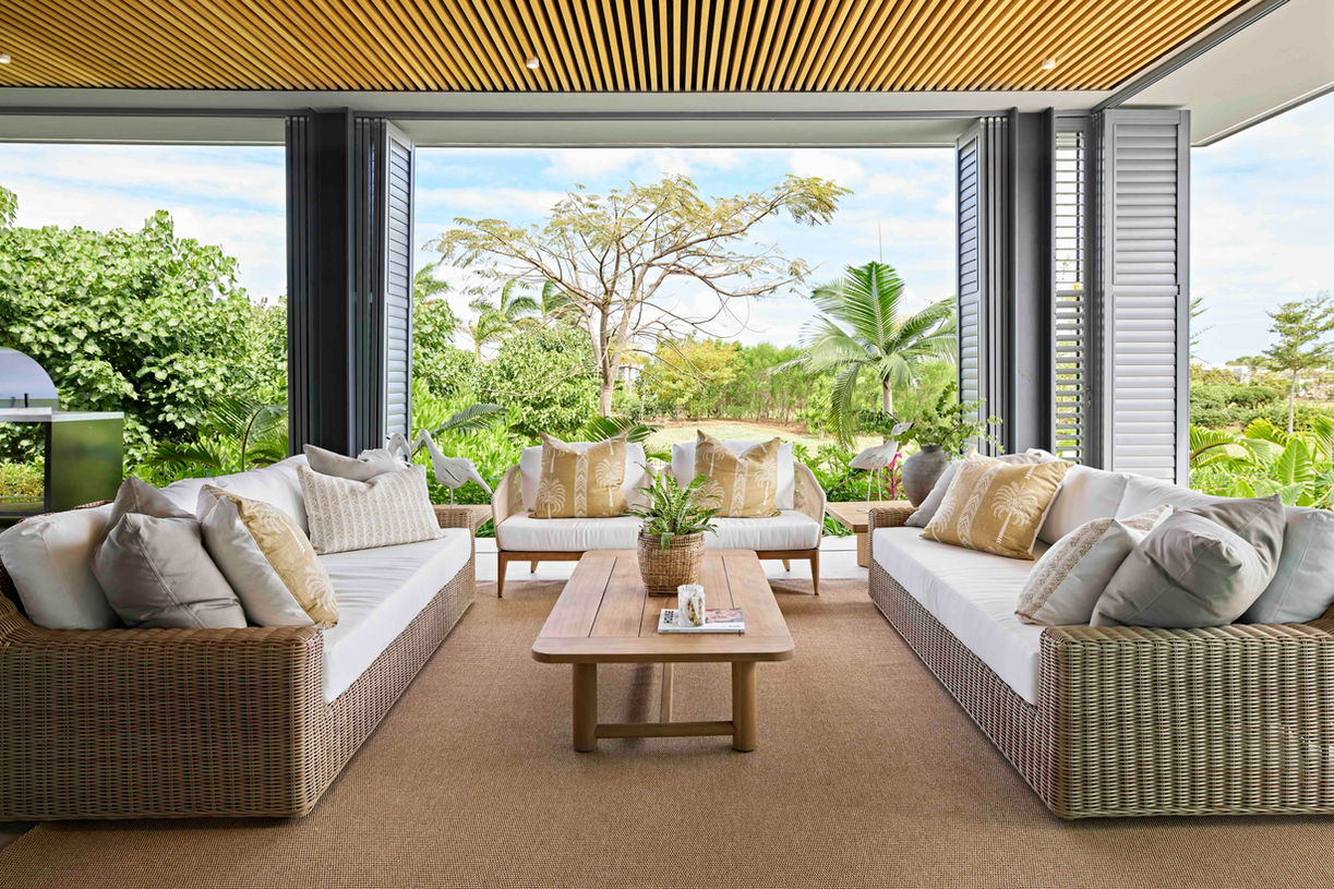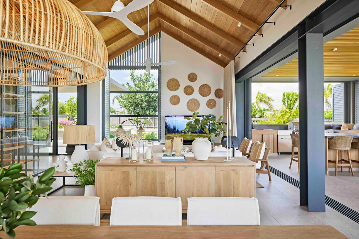 The house is designed as a single-storey villa, oriented to optimise the relationship to the parkland, with all living spaces and bedrooms opening onto the garden. The architectural language of the villa combines traditional beach cottage elements with modernist design principles, including open living spaces, a generosity of light, and a connection to the landscape.